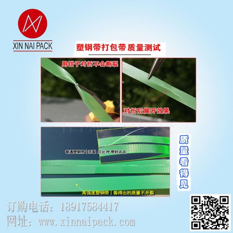 PET塑钢带,集钢带的强度和PP带的柔韧性于一体,克服了PP带的强度不够或脆性大的缺点。长期保持5%的收紧力,受到强大的外力撞击时有5%的缓冲伸长率。安全性能好,没有锋利的边角不会伤人,不受环境及气候的影响,一吨塑钢带的长度相当于6吨钢带的长度。经济效益高,使用安全方便。